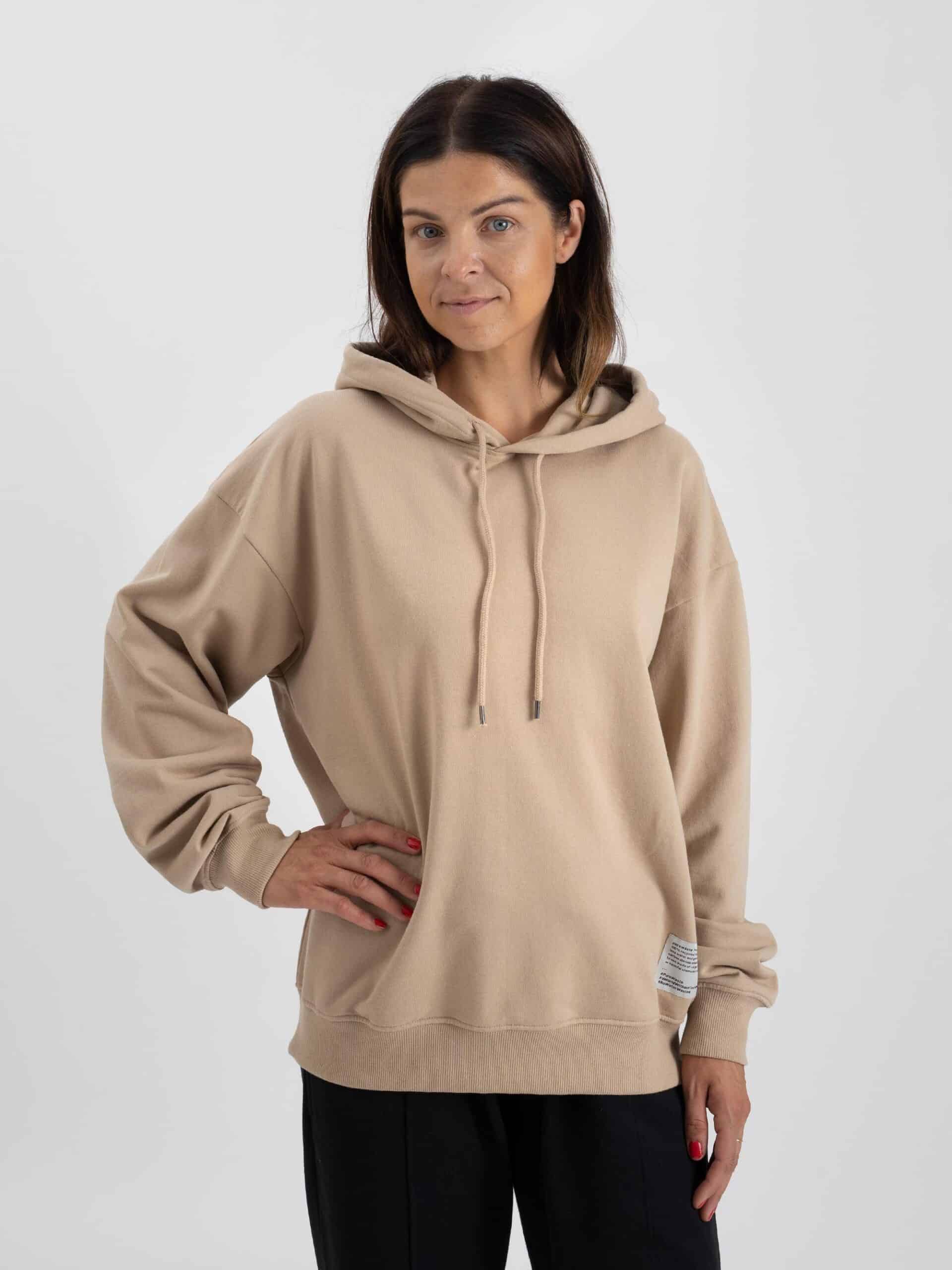 This beautifully hanging dress is made from our sweatshirt fabric manufactured from recycled cotton and recycled plastic bottles, responsibly in India. We do not dye our products; instead, they get their colours from their raw material, cotton waste.