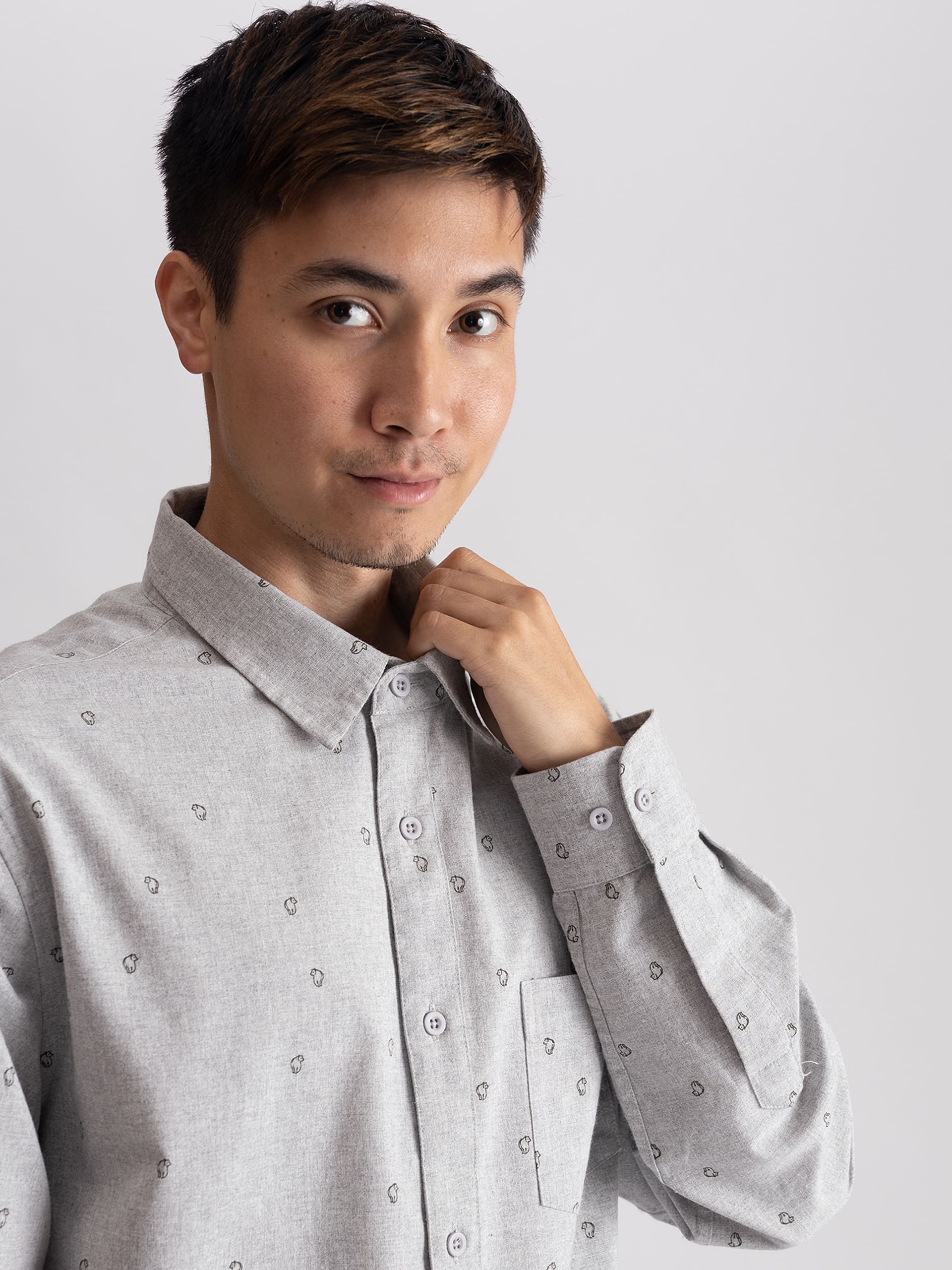 The collar shirt offers a relaxed fit and comes with a chest pocket. Its bear design draws inspiration from Finnish nature.