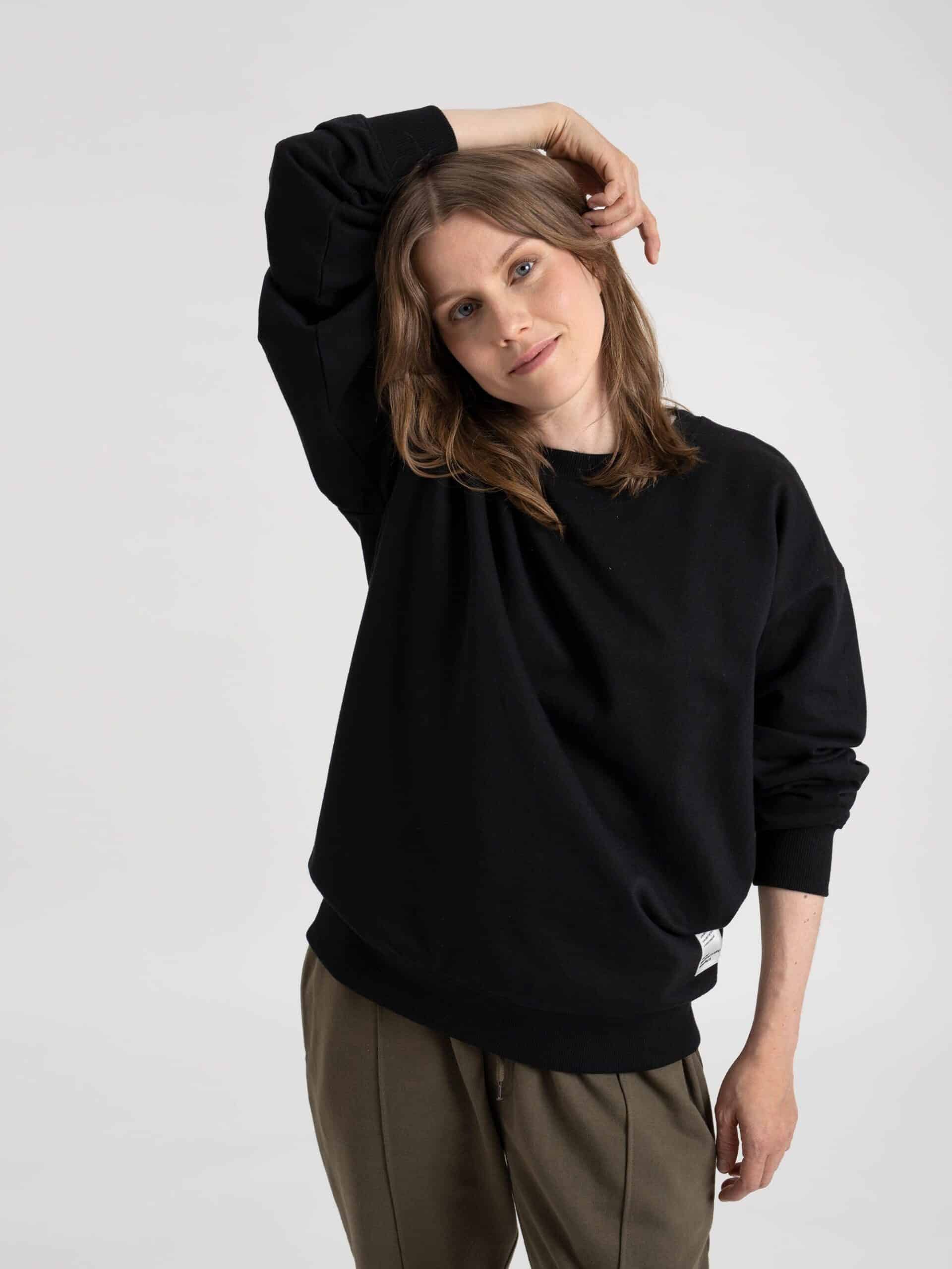 The inside of the Post Waste sweatshirt is soft, brushed knitted fabric. The sweatshirt has raglan sleeves, a straight cut and a low hem. The neck opening, sleeves and hem are ribbed. The unisex model is sold using men’s measurements; therefore, women should choose one size smaller than usual.